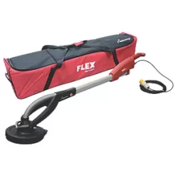 Drywall sander with variable speed motor and telescopic body, ideal for sanding hard to reach areas. LED torch to show unsmoothed areas and pivoting head to follow the contours of the work surface. Handle extends from 1450mm to 1970mm.